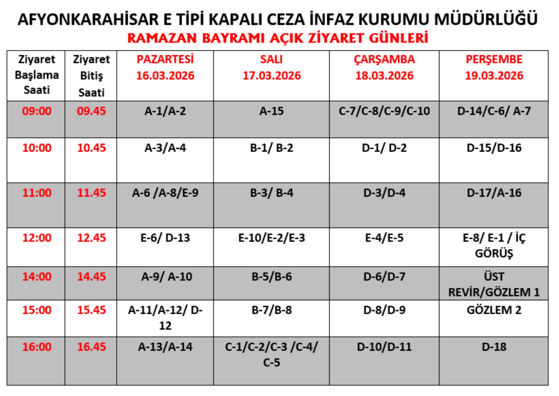 RAMAZAN BAYRAMI AÇIK ZİYARET GÜNLERİ